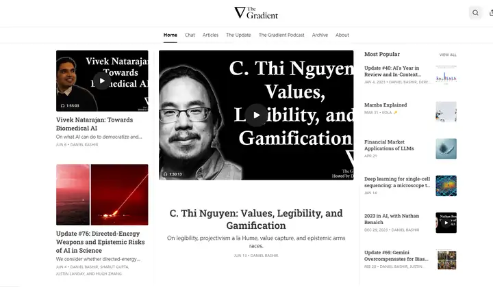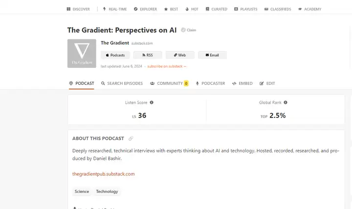 "The Gradient: Perspectives on AI" 是一个专注于人工智能和技术的科学播客。深度研究的、技术性的访谈,与思考人工智能和技术的专家们对话。由Daniel Bashir主持、录制、研究和制作。网址:http://thegradientpub.substack.com