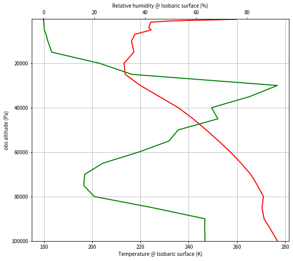 'Relative_humidity_isobaric']我们将提取要使用的变量以及压力值。要获取 压力的正确变量的名称(与温度和 相对湿度,我们看一下“坐标”属性。最后一个变量 “坐标”中列出的是压力维度。
