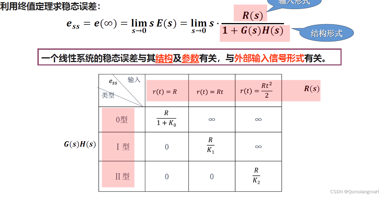 - 系统原理性稳态误差 :线性系统由于其结构、参数及输入信号形式不同所引起的稳态误差不同