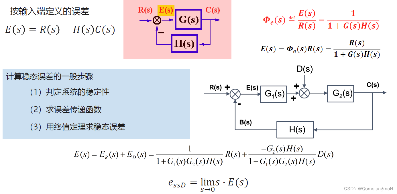 e_{ss} = lim_{t\infty} =e(\infty)- 系统的误差分为动态误差和稳态误差,动态误差是指误差随时间变化的过程值。而稳态误差是指误差的终值