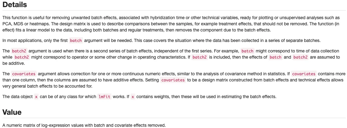 3、removeBatchEffect:https://rdrr.io/bioc/limma/man/removeBatchEffect.html