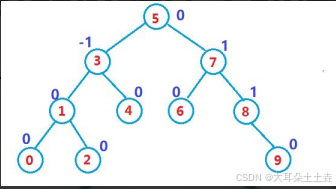 二叉搜索树虽可以缩短查找的效率,但如果数据有序或接近有序二叉搜索树将退化为单支树,查找元素相当于在顺序表中搜索元素,效率低下。因此,两位俄罗斯的数学家G.M.Adelson-Velskii和E.M.Landis在1962年发明了一种解决上述问题的方法:当向二叉搜索树中插入新结点后,如果能保证每个结点的左右子树高度之差的绝对值不超过1(需要对树中的结点进行调整),即可降低树的高度,从而减少平均搜索长度,如下图所示,每个节点都有一个平衡因子: