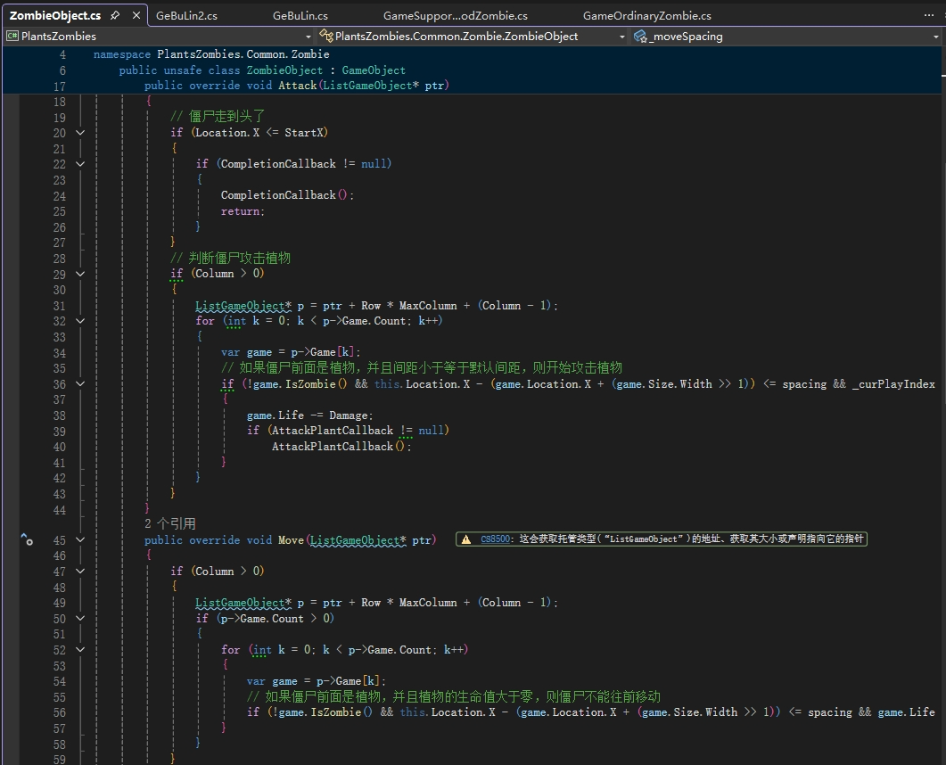 此外,游戏中的代码也展示了作者在技术层面的深厚功底。代码中处处可见的指针操作,托管代码中夹杂非托管代码,这些都体现了作者对C#语言的深入理解和精湛技艺。
