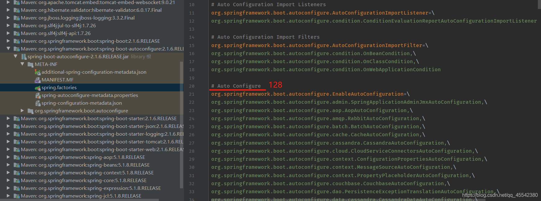 根据上面的 SpringBoot的特定得知SpringBoot的底层就是大量的 自动配置类 SpringBoot2 128个