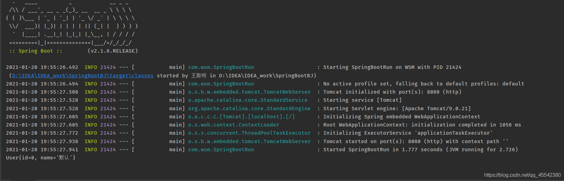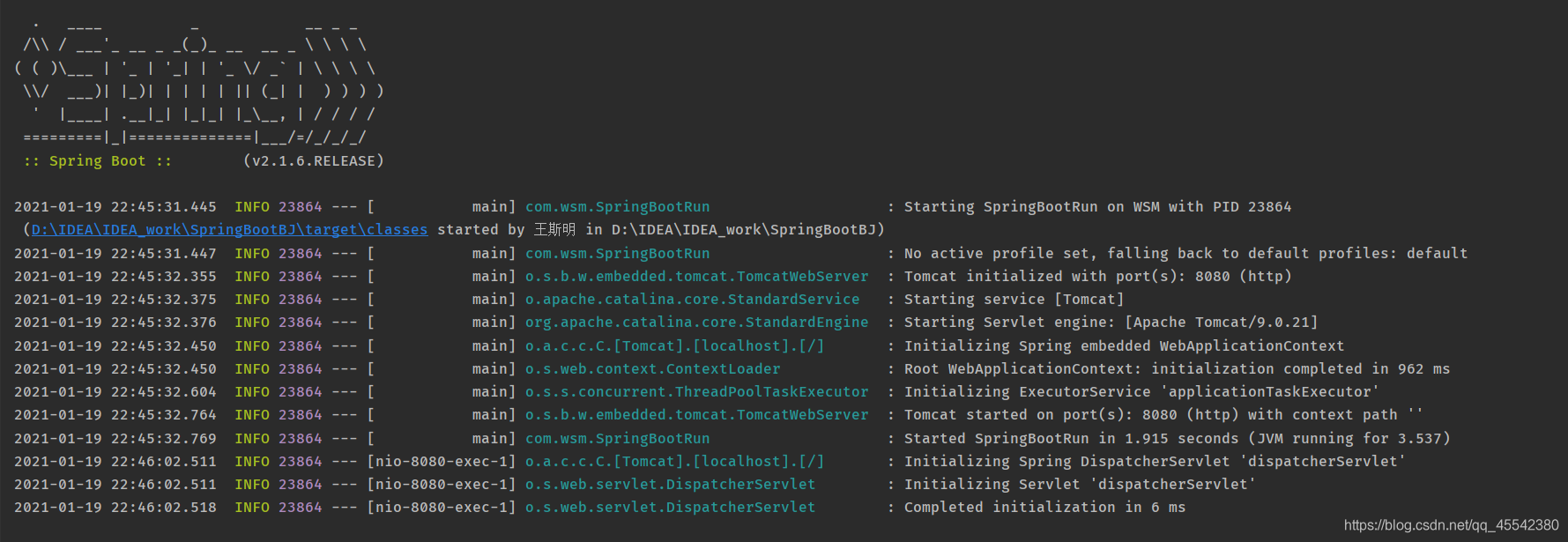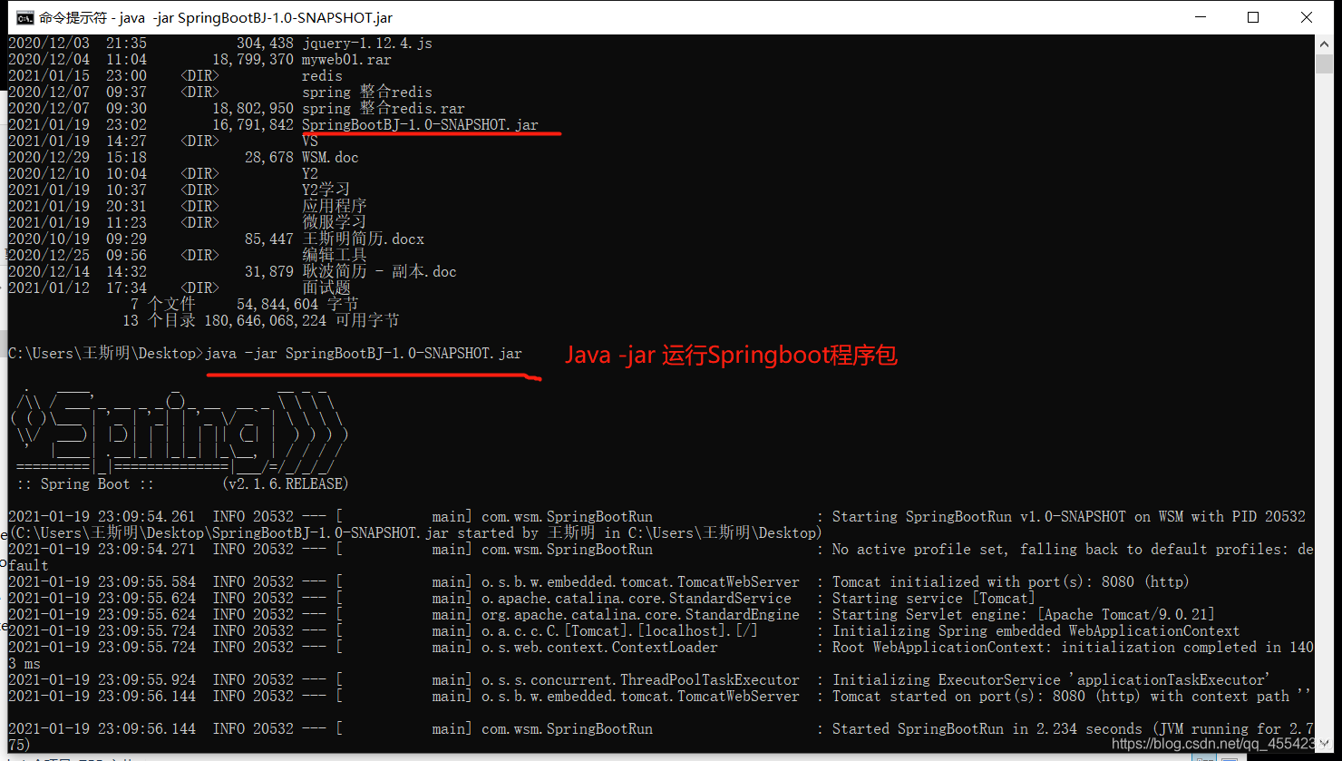 可以清除的看到 Tomcat initialized with port(s): 8080 (http)