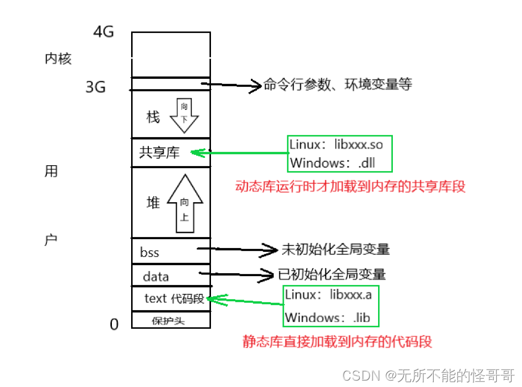 静态库会直接加载到代码段,他和所有的目标文件一起链接成可执行文件,生成可执行文件后可以独立运行。但是,正因为静态库会直接加载到内存的代码段,可执行文件的内部都拷贝了所有目标文件和静态库的指令和数据,编译生成的可执行文件会比较大。并且,如果整个系统中有多个链接统一静态库的可执行文件时,每个可执行文件都要拷贝一份静态库的指令和数据,这就造成了空间浪费,因为他们拷贝的数据都是同样的内容。最后,如果一旦静态库文件有代码更新,就需要重新编译链接重新生成整个可执行文件,更新升级麻烦。在 Linux 系统中,静态链接库文件的名称通常为 libxxx .a,在 Windows 系统中,静态链接库文件的后缀名为 .lib。