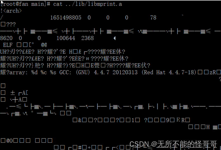 可以查看一下生成的 libmprint.a 的内容,一堆乱码