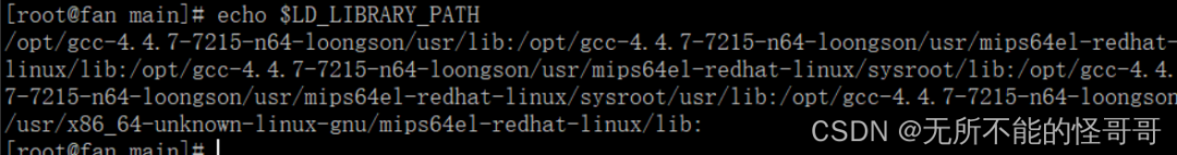 实际上, ld 链接器在寻找库路径的时候,都是通过一个环境变量 LD_LIBRARY_PATH 来寻找的,我们可以打印看一下这个环境变量