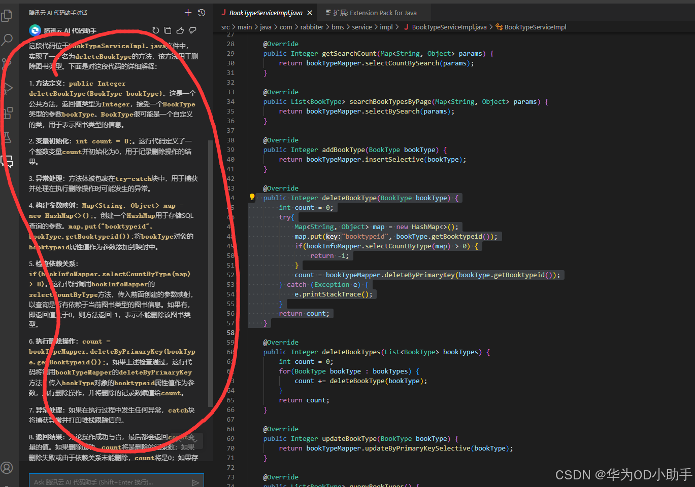 可以看到左侧AI助手反馈给我的代码解释,根据解释可以很好的理解这段代码的作用。