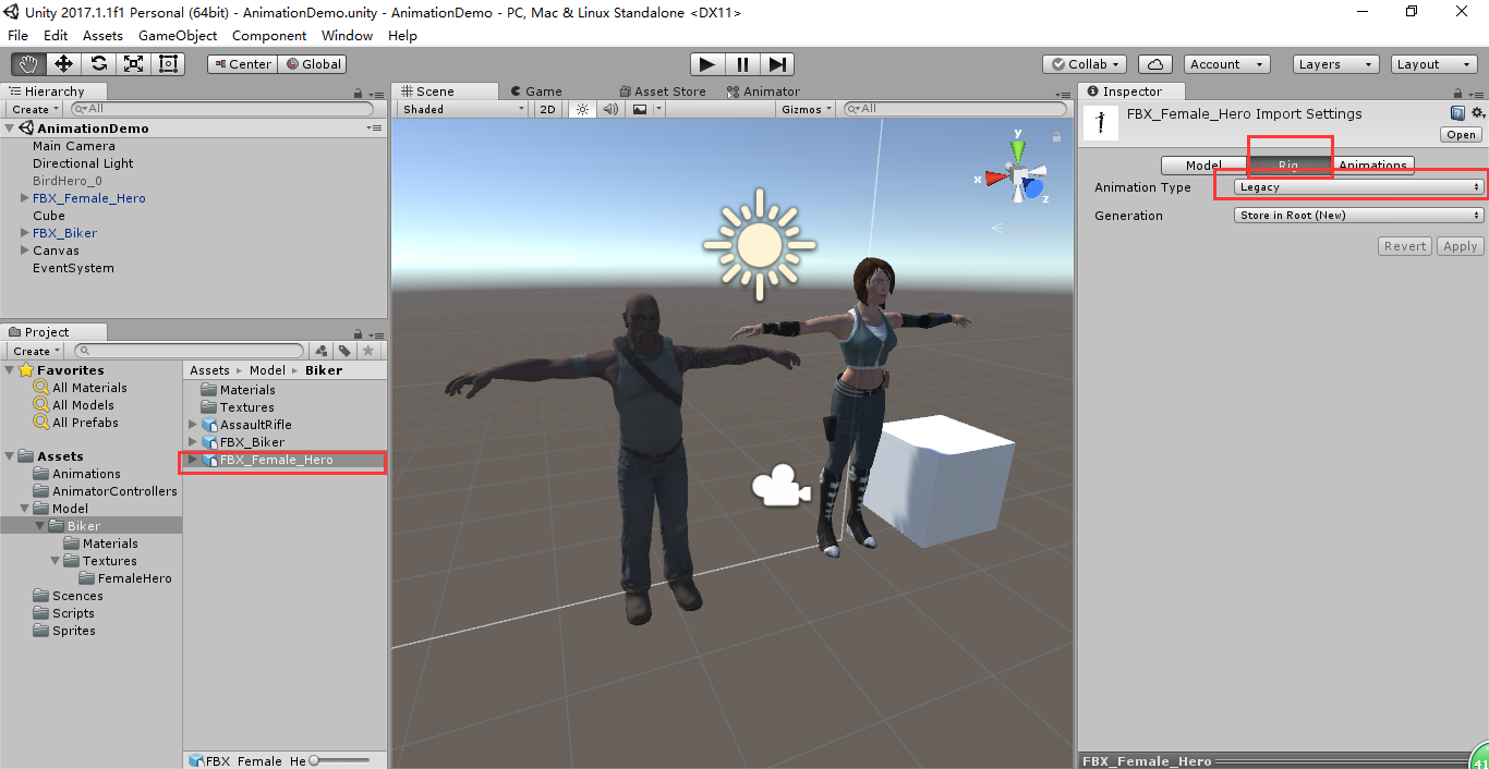 Hierarchy模型Inspector—Play Automatically(自动),勾选则为自动播放
