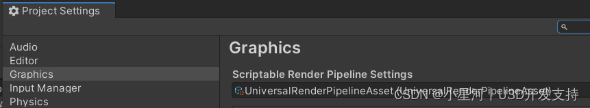 Edit/Project Settings/Graphics,将创建的渲染管线Asset拖到右侧