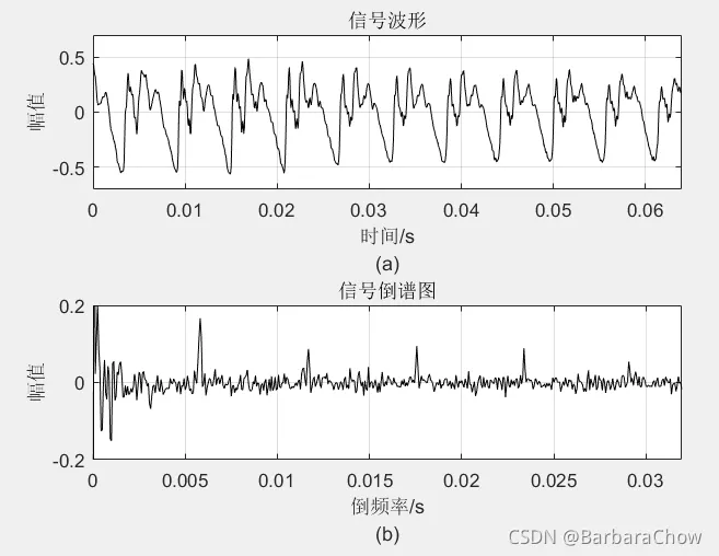 ylabel('幅值'); xlabel(['倒频率/s' 10 '(b)']);