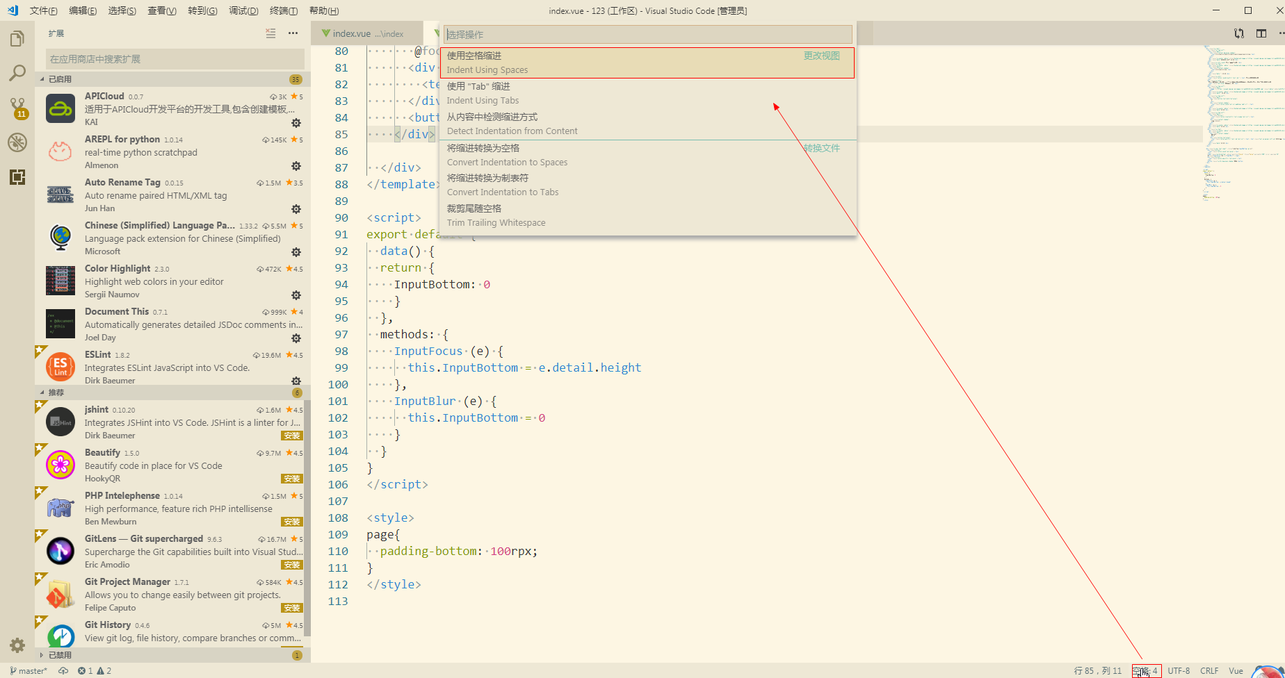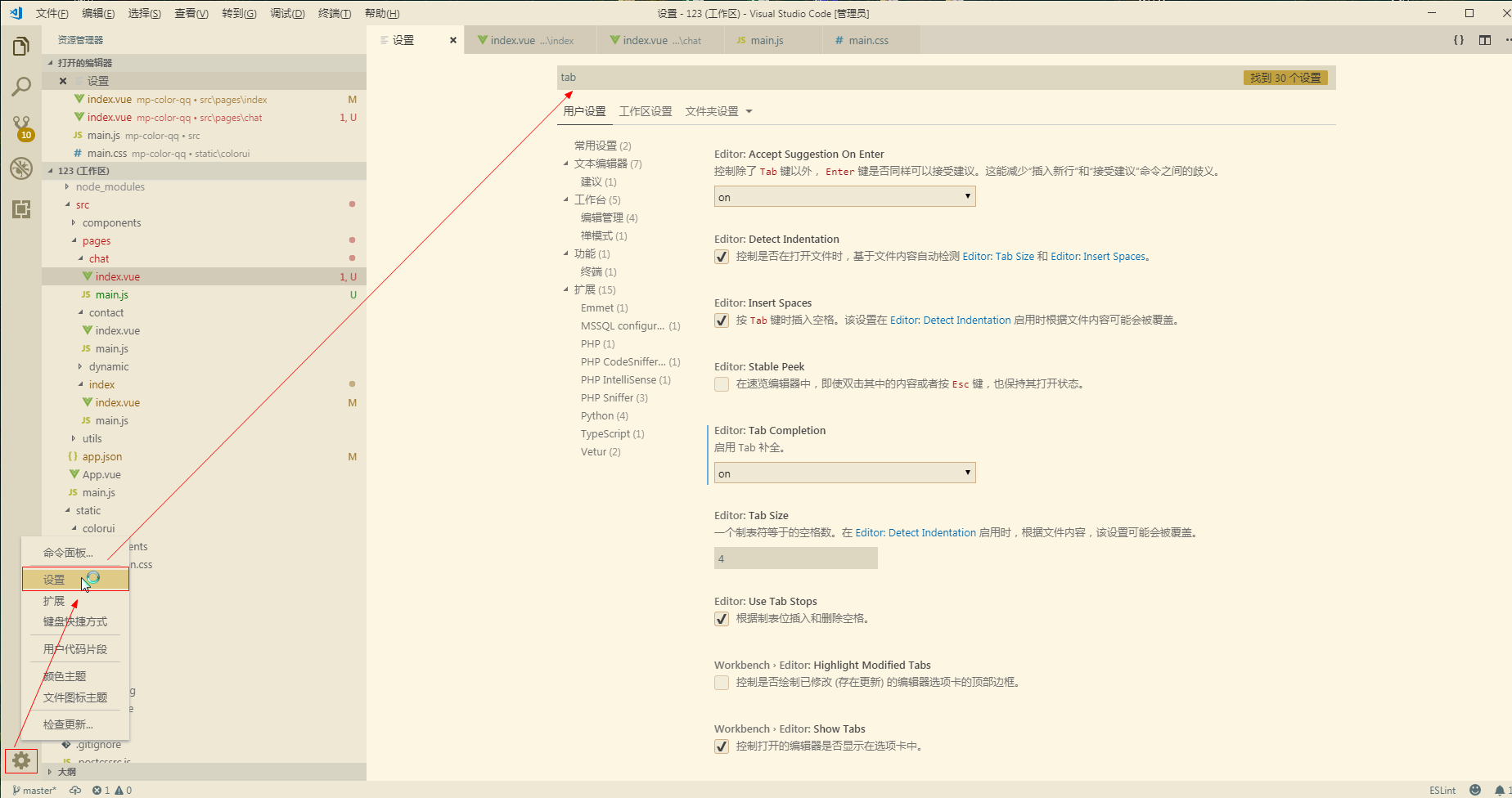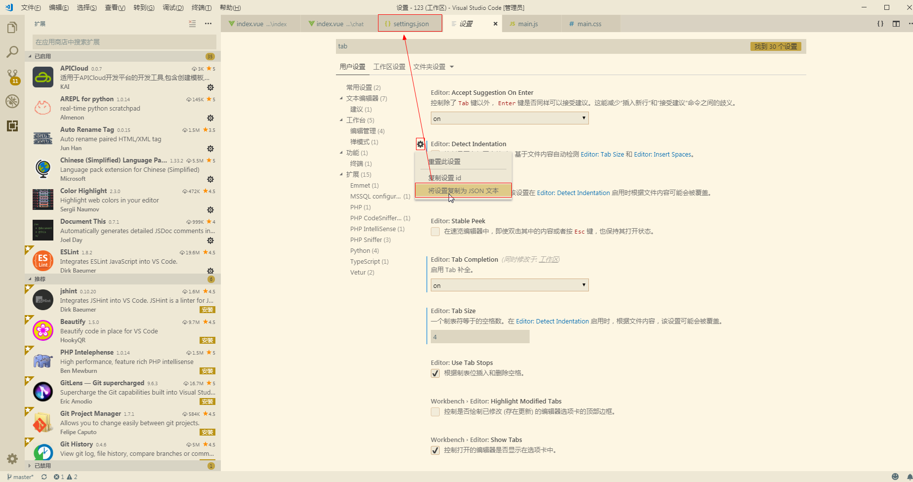 为了规范写法,开启了eslint,但是tab没设置转空格,这里记录下设置过程。