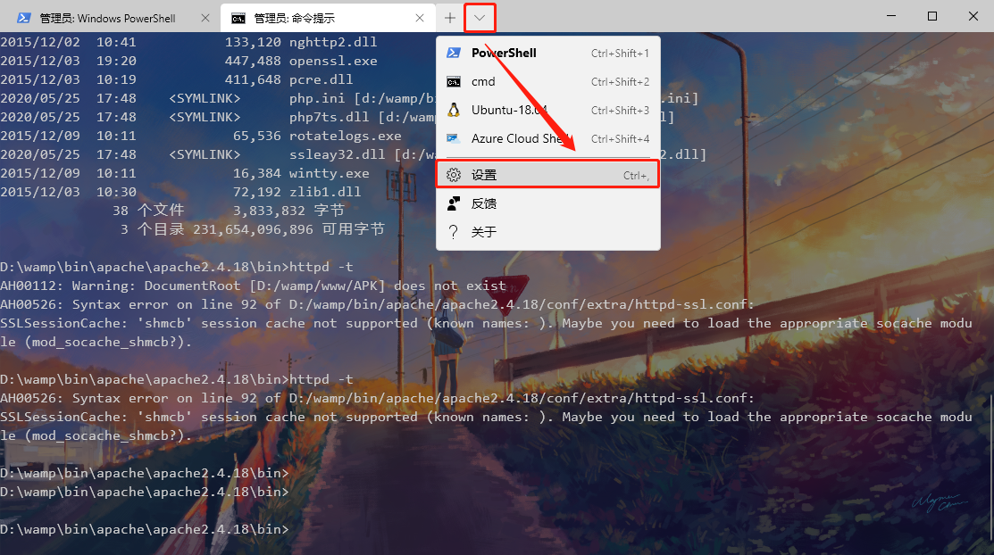 list中修改。schemes配置好,在list中引用。// This file was initially generated by Windows Terminal 1.0.1401.0