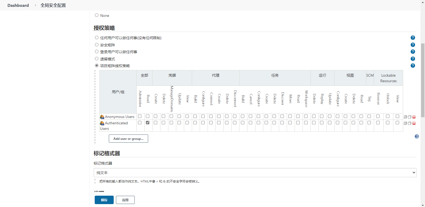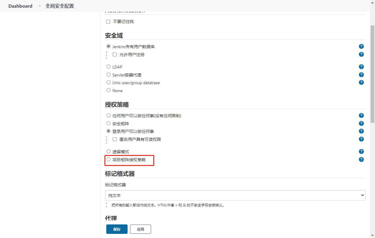 系统管理->全局安全配置->项目矩阵授权策略