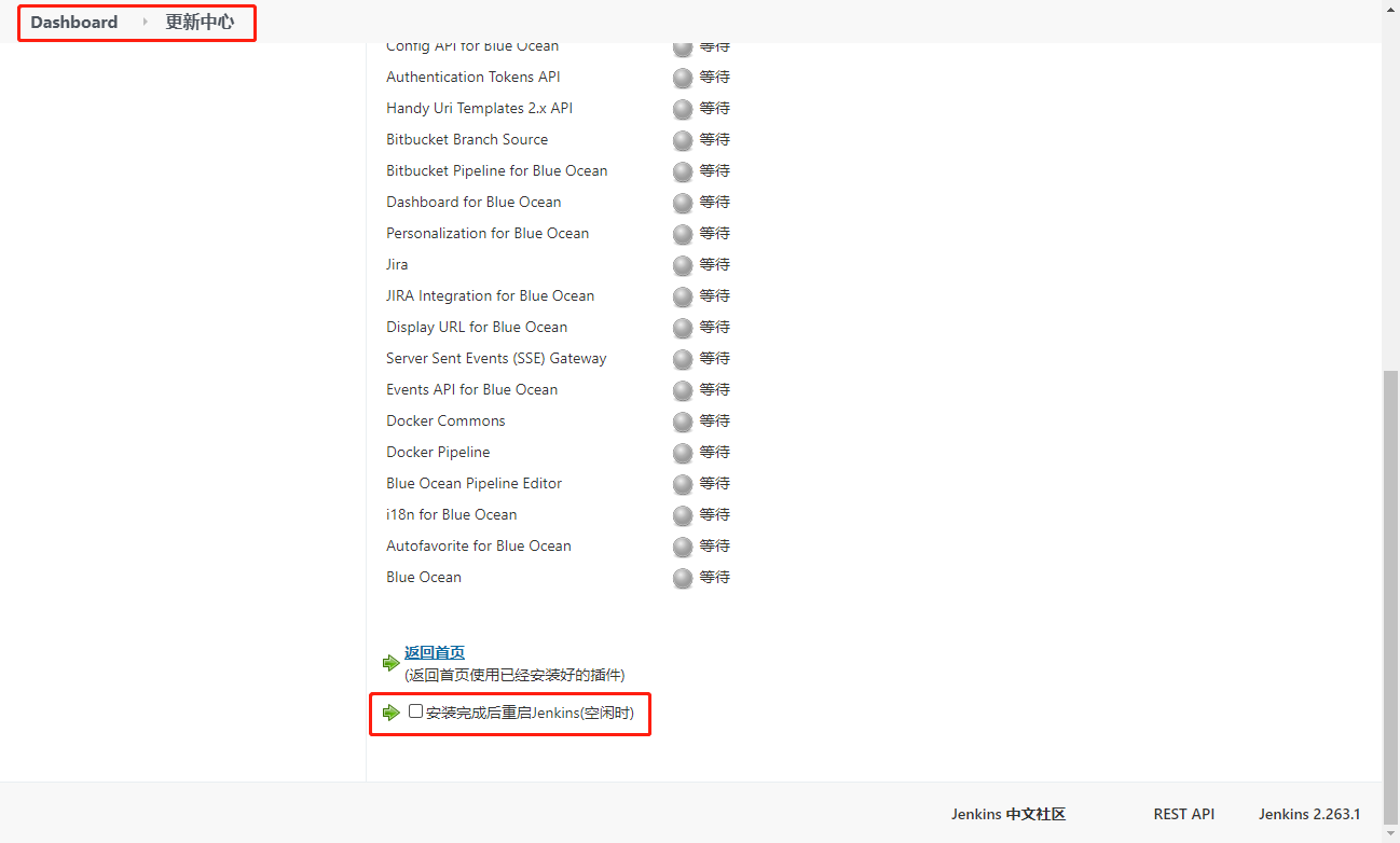 插件安装完成的时候重启Jenkins