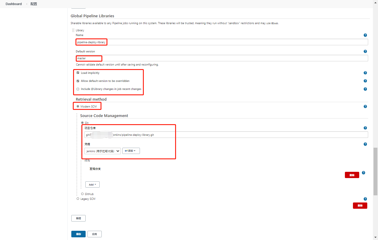 系统管理->系统配置->Global Pipeline Libraries中点击新增来创建共享类库,其基本信息如下: