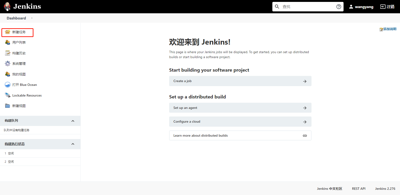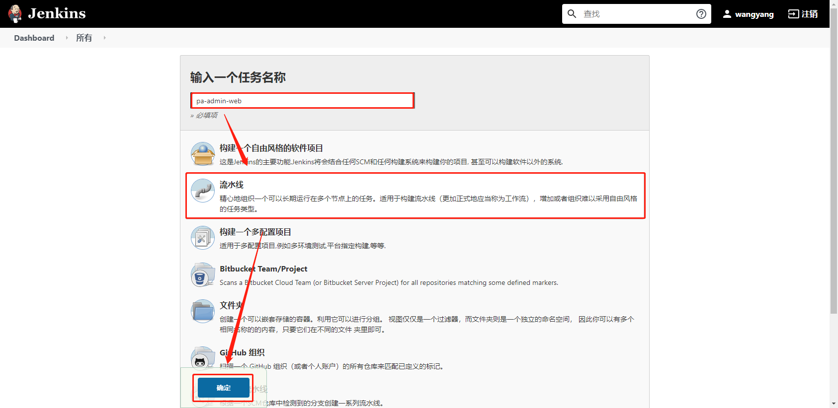 新建任务->输入名称->流水线->确定
