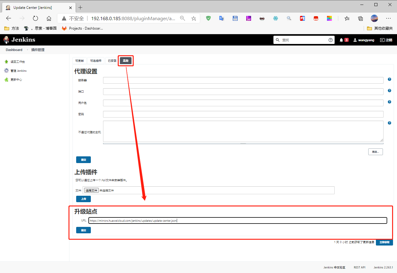 Manage Jenkins->Manage Plugins->高级