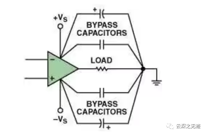 对于双电源供电模式,在V+和V-之间接一个滤波电容,可以减少电路中的偶数次高次谐波。
