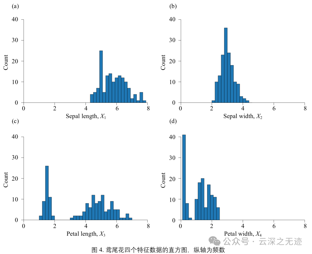 数据集包括4个属性,分别为花萼的长、花萼的宽、花瓣的长和花瓣的宽。对花瓣我们可能比较熟悉,花萼是什么呢?花萼是花冠外面的绿色被叶,在花尚未开放时,保护着花蕾。四个属性的单位都是cm,属于数值变量,四个属性均不存在缺失值的情况,字段如下: