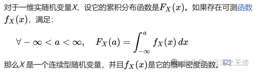 当概率密度函数存在的时候,累积分布函数是概率密度函数的积分。
