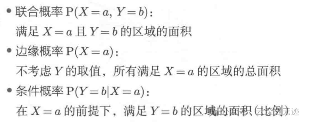 下图中,横轴为随机变量的取值,纵轴为概率密度函数的值,而随机变量的取值落在某个区域内的概率为概率密度函数在这个区域上的积分。