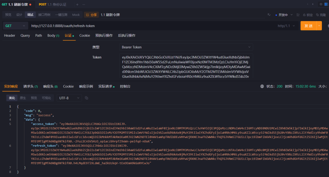 通过以上请求带上有效的refresh_token,拿到新的access_token和refresh_token