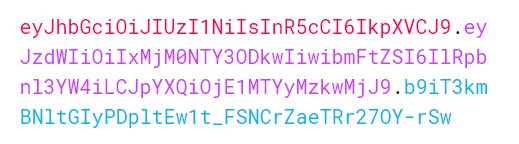 它是一个很长的字符串,中间用点(.)分隔成三个部分。注意,JWT 内部是没有换行的,这里只是为了便于展示,将它写成了几行。