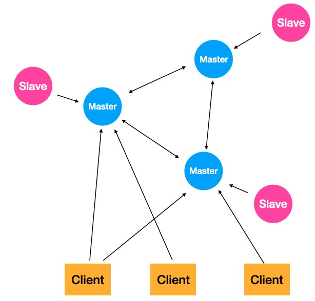 到此为止我们已经实现了Redis的高可用,不过这时我们业务进入了一个高速发展的阶段,key的数量达到了一个非常高的量级,redis内存不断告急,运维不断的扩容,RDB文件这时变得特别大,主从同步也变得非常缓慢,另外这时写的请求量也上来了,单Master已经扛不住了,这时就需要分片存储了,将key均匀的分布到多个Master上,减小单台redis内存,分担单个Master压力。