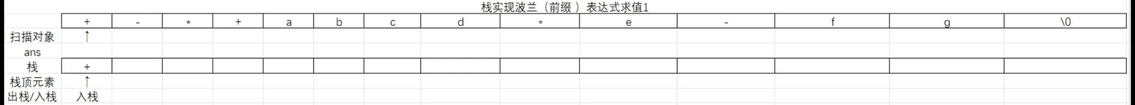 从这个基本逻辑上是不是感觉很简单,但是这是在这种操作符与操作数完全分离的例子,如果替换成"+-*+abcd*e-fg"这个例子时,这个算法逻辑就会存在问题,如下所示: