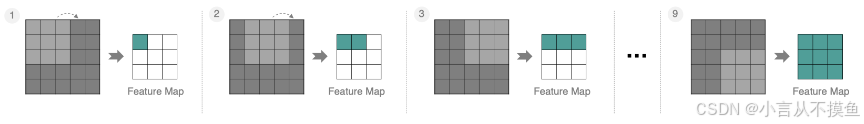 按照步长为1来移动卷积核,计算特征图如下所示: