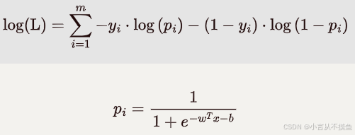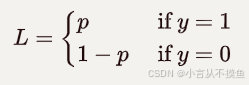 假设:有 0、1 两个类别,某个样本被分为 1 类的概率为: p, 则分为 0 类的概率为 1-p,则每一个样本分类正确的概率为: