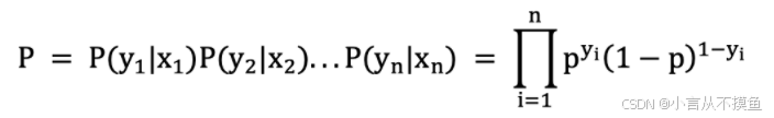假设,我们现在有样本:[(x1, y1), (x2, y2) … (xn, yn)],那么,全部预测正确的概率表示为: