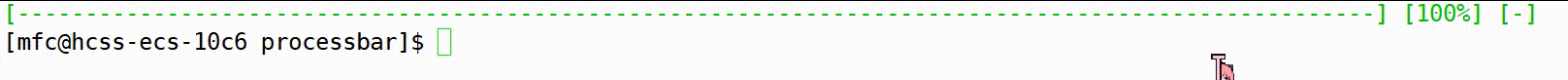 该程序实现思路是,我们使用一个空字符数组来存储进度条的字符信息,一开始为空,每过一个单位时间就重新打印一遍字符数组并多初始化一个数组内容为进度条的组成字符,直到字符数组被填满,表示进度已满。我们也可以在后面加上一个百分比数字来帮助判断进度条的进度, 还可以加上前面的旋转指针来表示进度条在加载, 实现思路和前面完全一样。