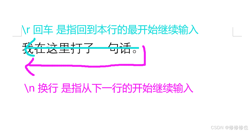 这个小程序的作用就是根据调用函数时传入的数字, 然后从这个数字的秒数开始倒计时。实现原理也很简单, 就是每隔一秒打印一个减减后的数字即可。 但是在此之前我们要先了解一个转义字符: \r(回车) 它会使光标回到当前行的最前端。 要注意将换行和回车区分开: