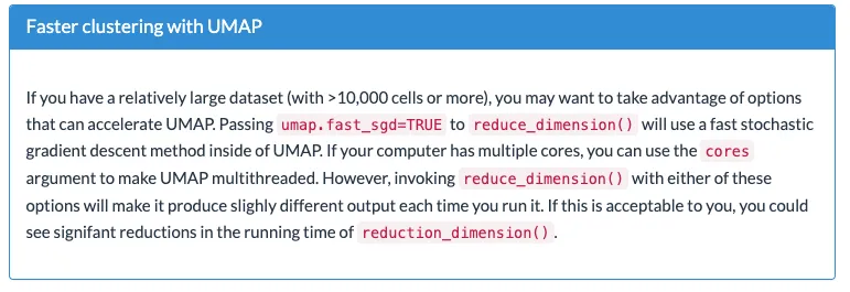 甚至对于更多的细胞来说,还可以加速分析!需要设置umap.fast_sgd=true