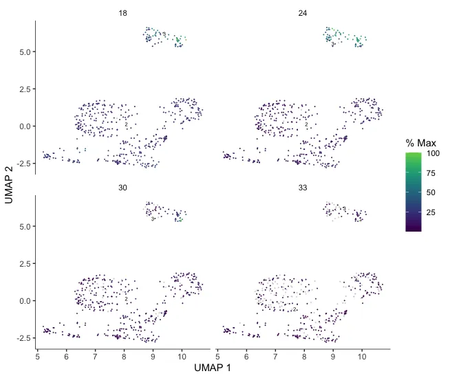gene_module_df <- find_gene_modules(cds_test[pr_deg_ids,], resolution=1e-2)