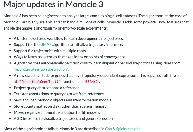 1、monocle3: https://cole-trapnell-lab.github.io/monocle3/docs/introduction/