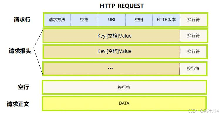 • 首行:[方法] + [url] + [版本]。
