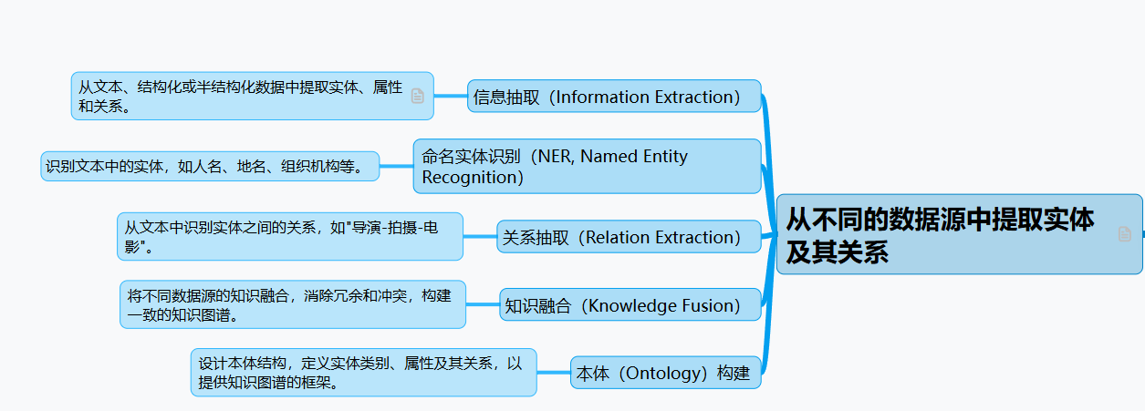 构建知识图谱的核心是从不同的数据源中提取实体及其关系,主要有以下几种方式: