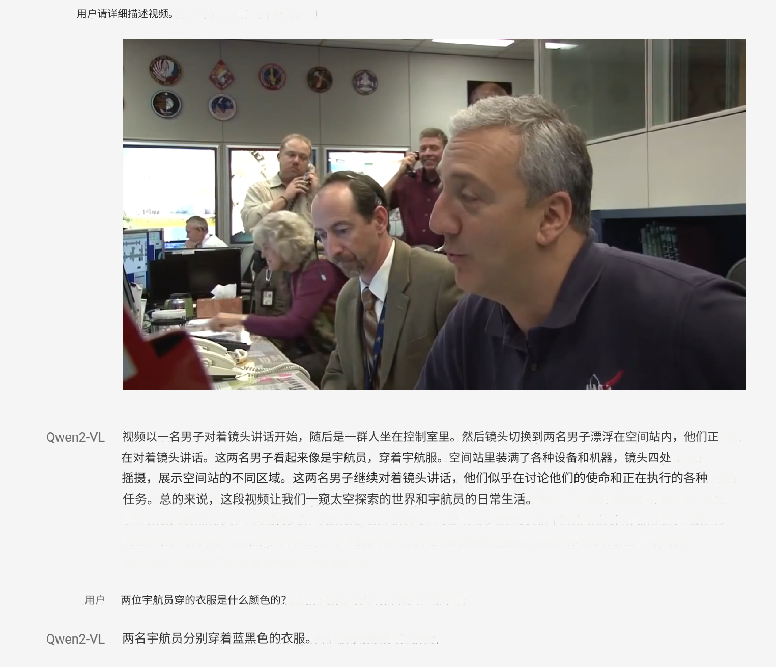 特别是针对于细节问题。比如这里询问“宇航员穿什么颜色的衣服?”,大模型能够精准回答出来。
