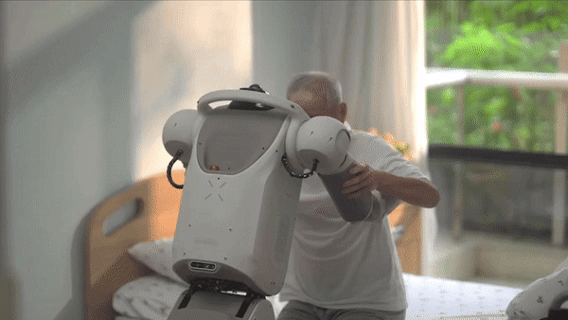 然后,我学习了老年人的运动特性,采集了少量老人的抱扶数据,训练出最优动作,让老人感到舒适。