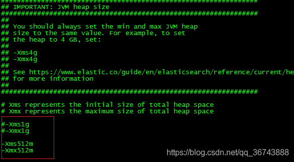 解决内存不足问题,启动的时候卡住的原因了,warning: ignoring JAVA_HOME=/usr/local/jdk1.8.0_131; using bundled JDK 由于 elasticsearch 默认分配 jvm空间大小为2g,修改 jvm空间,如果Linux服务器本来配置就很高,可以不用修改。