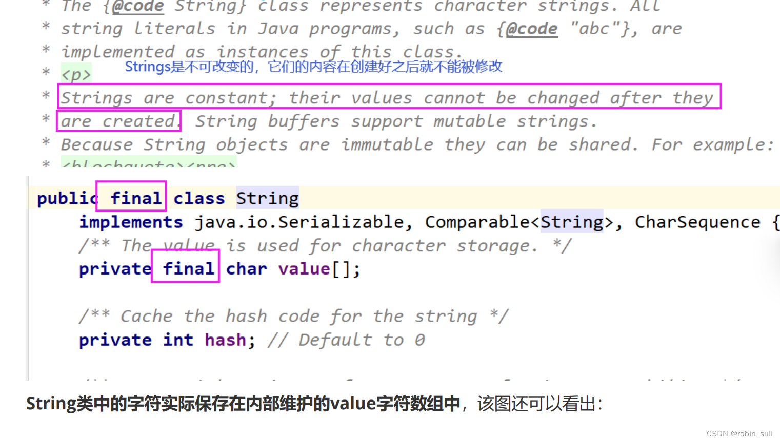 其原因. 是String类在设计时就是不可改变的,String类实现描述中已经说明了