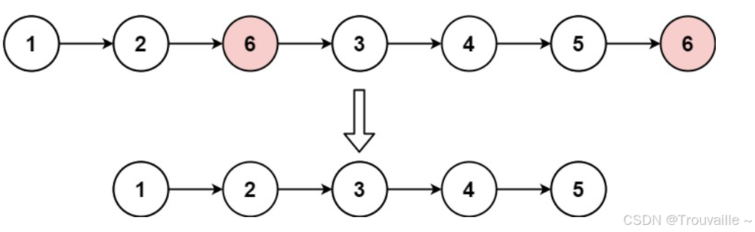head和一个整数val,请你删除链表中所有满足Node.val == val的节点,并返回 新的头节点 。