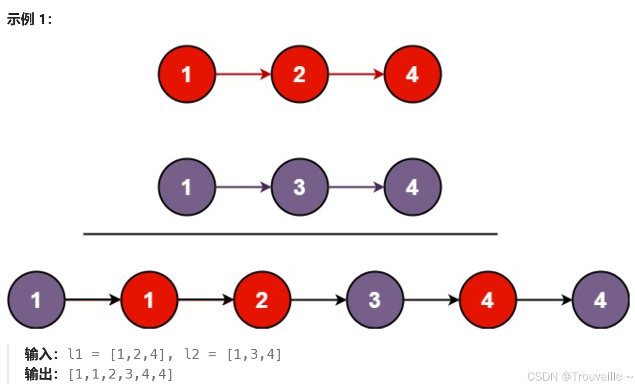 }将两个升序链表合并为一个新的 升序 链表并返回。新链表是通过拼接给定的两个链表的所有节点组成的。