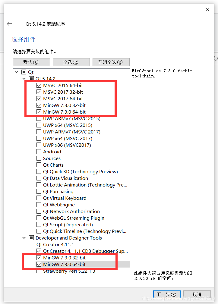 出现如图所示的选择编译工具的界面,可以将编译工具都选中,在编译项目时再选择一个作为当前使用的编译工具,这样可以编译生成不同版本的可执行程序。