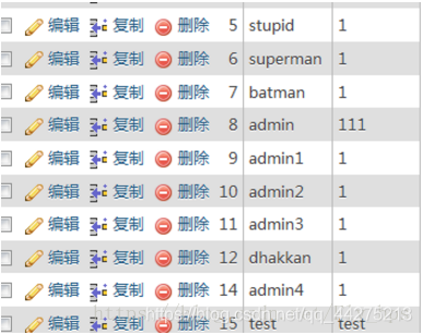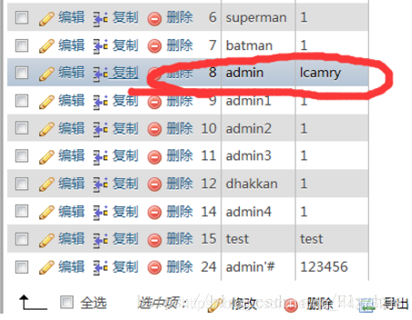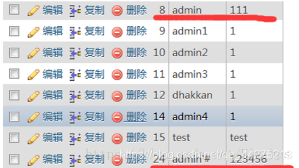 如果此时查看后台数据库,此时的数据库中出现了admin’#的用户,同时admin的密码为111 登录admin’#,并修改密码