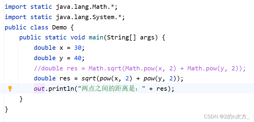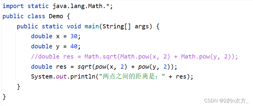 }当导入静态方法之后 import static java.lang.Math.*; 就可以省略掉之前的Math.